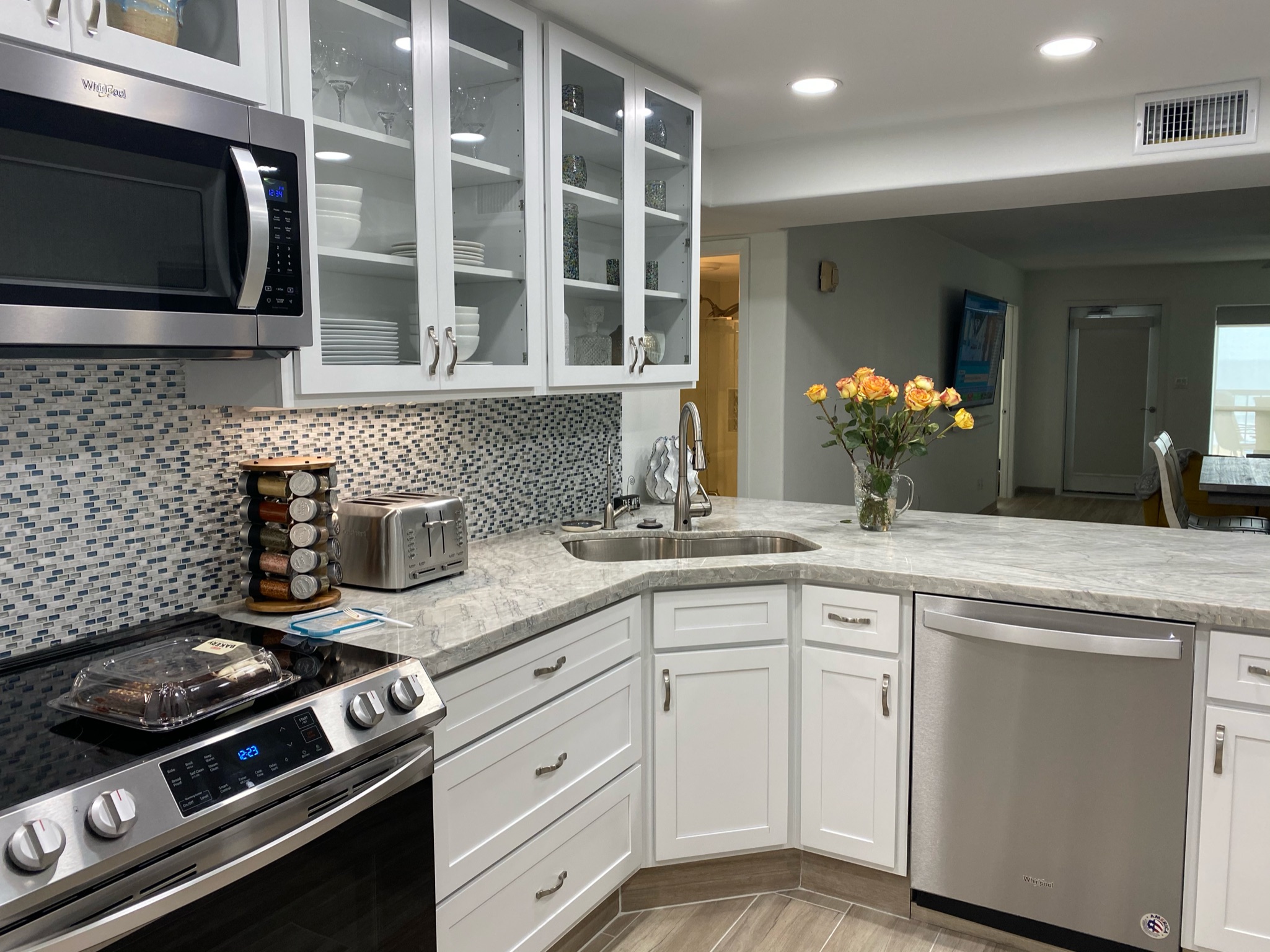 A beautifully appointed, fully remodeled kitchen is yours to enjoy. You’ll find custom shaker cabinetry, stainless steel appliances, electric stove and oven, microwave, dishwasher, refrigerator and freezer. Separate dual-freezer drawers for storing bags of ice. Keurig Coffee maker and Nespresso Machine (bring your own pods!). 4-slice toaster. Spice rack for cooking needs. Air Fryer. Ninja Blender. Ice Tea Maker. Plates, cups, bowls and silverware for 8 people. And additional kitchen equipment for your chef-friendly needs.