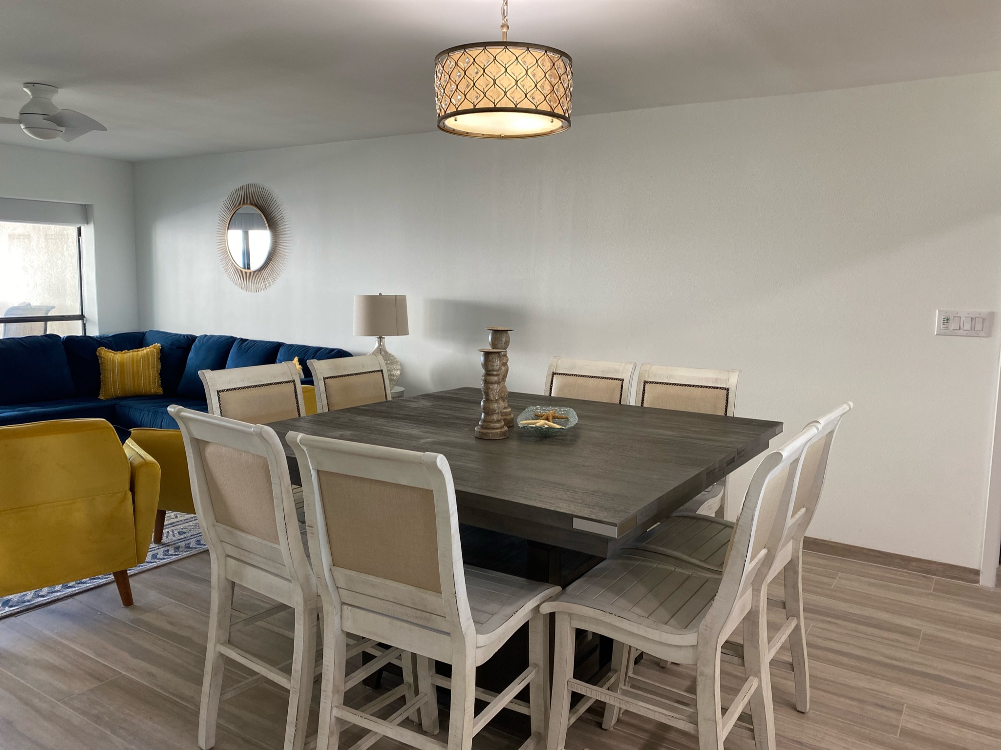 Enjoy splendid beach views with a fully furnished patio, including comfortable swivel chairs for 8, outdoor wi-fi access and a fully-equipped Blackstone 36″ Griddle With Air Fryer to enjoy your outdoor cooking.